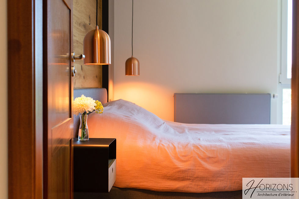 Le 1er étage de cette maison a été complètement retravaillé afin de créer 4 chambres et 3 salles d'eaux dans une ambiance contemporaine et chaleureuse. Chaque membre de la famille y trouve son espace.