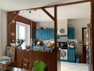 Déplacement de l'entrée, création d'un ilot, création d'un linaire de colonne ; la cuisine est devenu un espace fonctionnel.